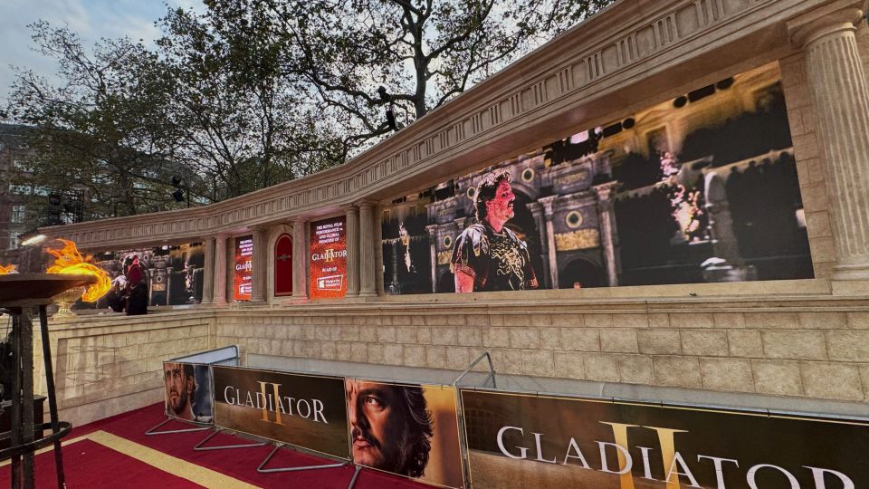 LONDON – Sometime around the start of the second century, in the spot where The Guildhall now stands, the Romans completed a coliseum which housed chariot racers and, yes, gladiators. On 13 November, a bit of this ancient grandeur (happily without actual gladiatorial combat!) returned to London, as the city hosted the long-awaited premiere of Ridley Scott’s Gladiator 2 at Leicester Square, complete with set pieces inspired by Roman architecture.